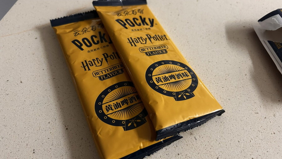 제가 먹어본 건 버터맥주라고 나온 음료, 초콜릿, 그리고 이 포키였는데
