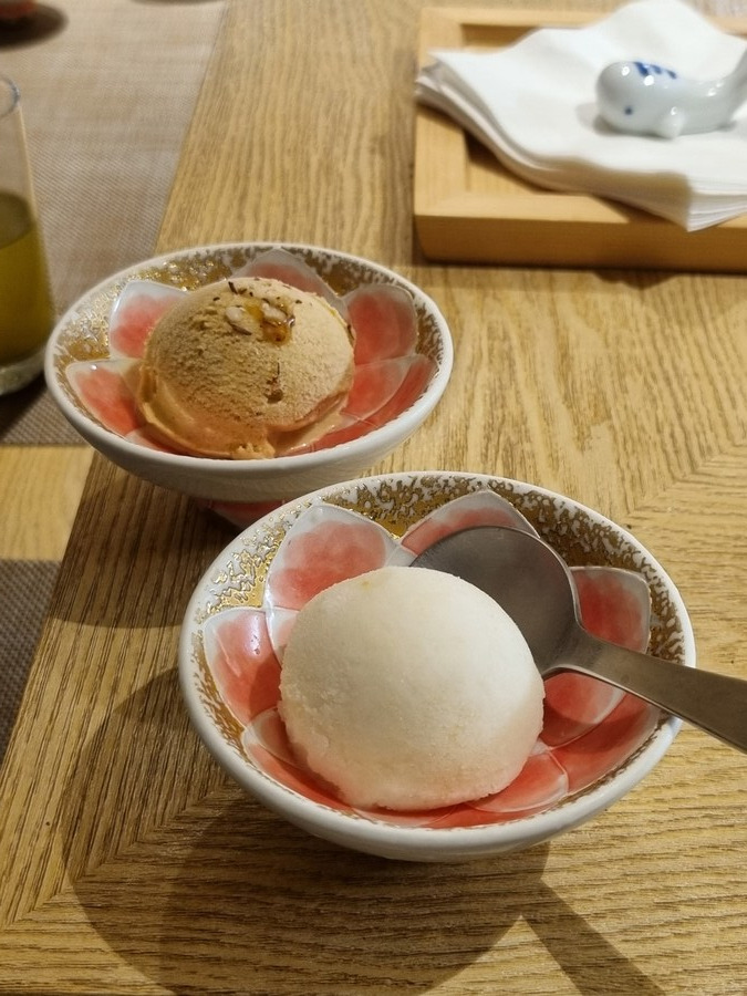 더덕, 잣 샤벳과 참기름 뿌린 흑당 콩가루 아이스크림