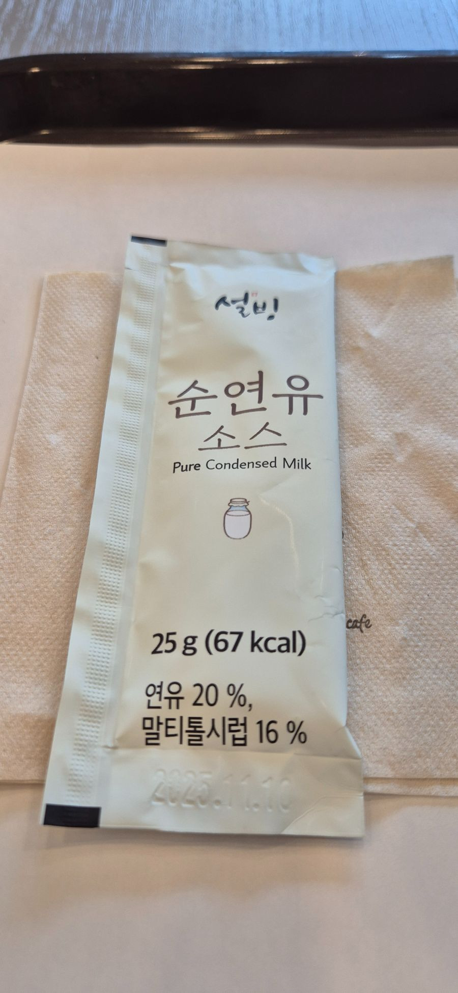 어느정도 먹고나서 연유를 뿌려서 먹어봅니다.