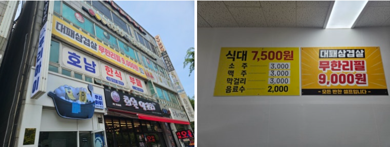 술 (소주 맥주 막걸리) 3000원, 음료 2000원