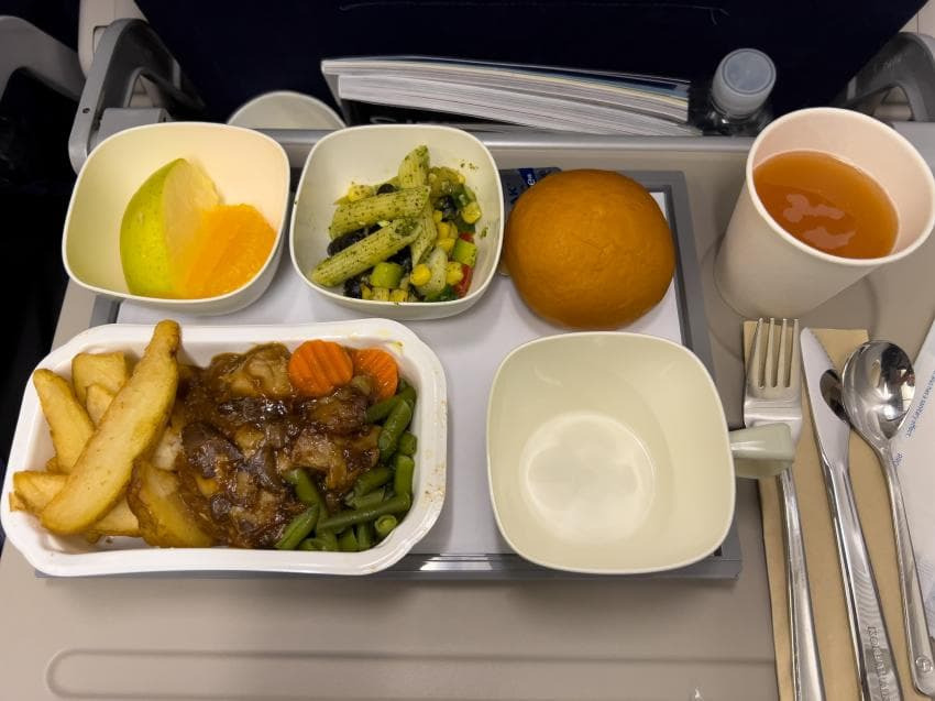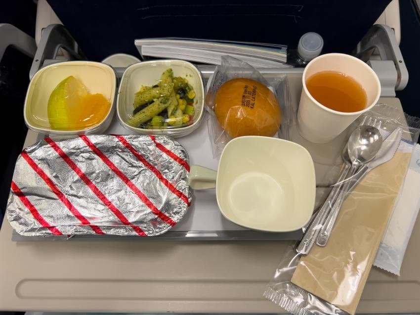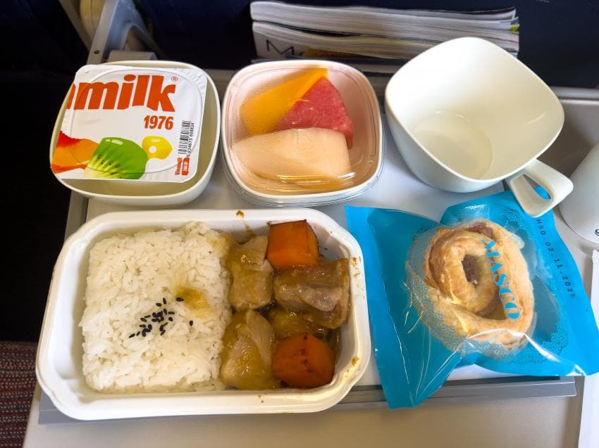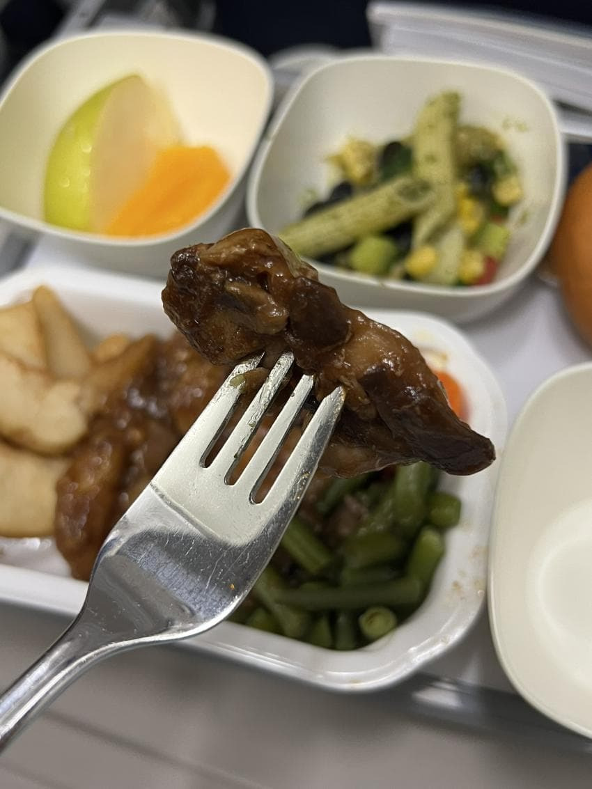 메뉴는 오믈렛이랑 닭고기&밥이 있었는데 계란 별루라서 닭고기 받아옴