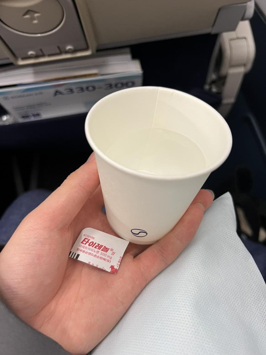 이륙한 후에 두통땜에 타이레놀 받아옴