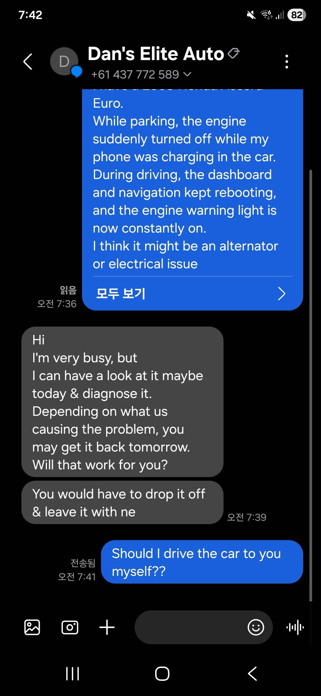 오늘 큰맘 먹고 차량정비소에 맡겼습니다