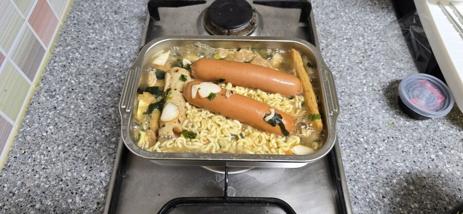 그냥기본 오뎅탕 만 먹엇으면 실망이클텐데 튀김우동 스프 반만 넣고 물을 트레이 위쪽 선까지 넣고 끓이니