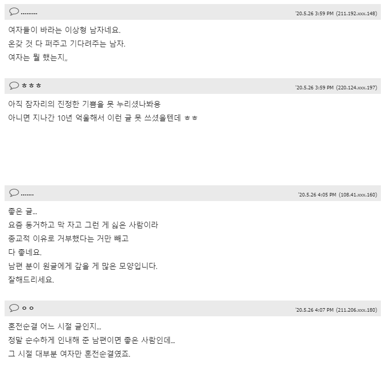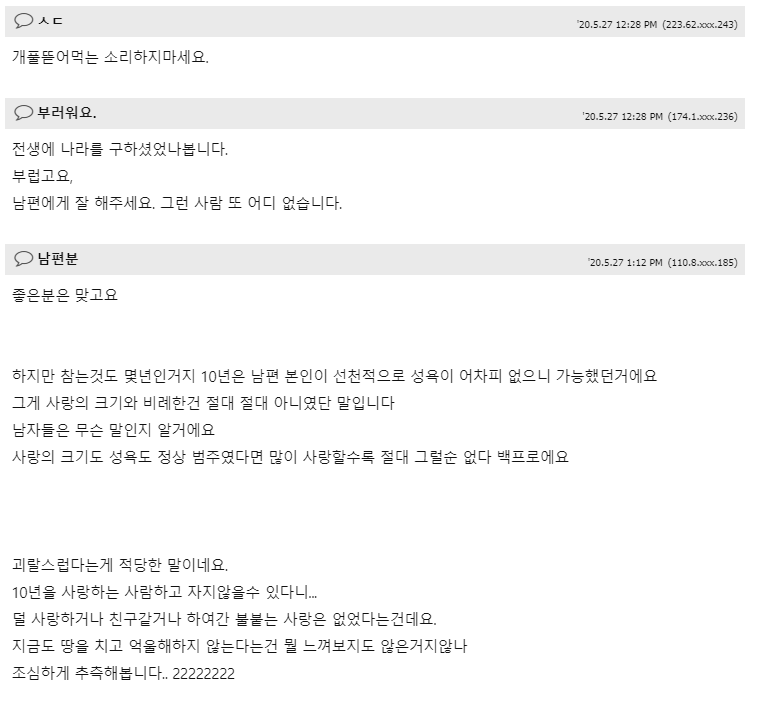 비회원 이슈 0 3 02.12 17:00 10년 동안 성관계 없이 사귀다 결혼한 남편 출처 : https://m.bboom.naver.com/best/get?boardNo=9&postNo=4362891 이 글을 SNS로 공유하기