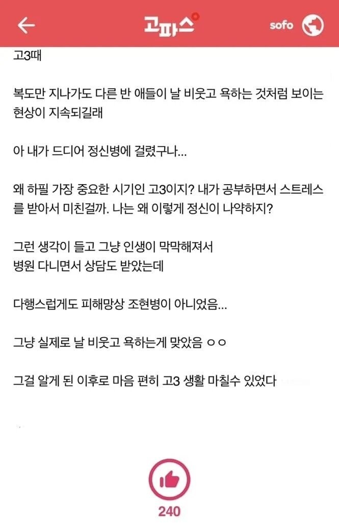 비회원 이슈 0 41 09.25 07:00 고3때 조현병 걸린줄 알았는데.jpg 멘탈이 엄청 강하신대요?ㅋㅋ 출처 : https://m.bboom.naver.com/best/get?boardNo=9&postNo=4331095 이 글을 SNS로 공유하기