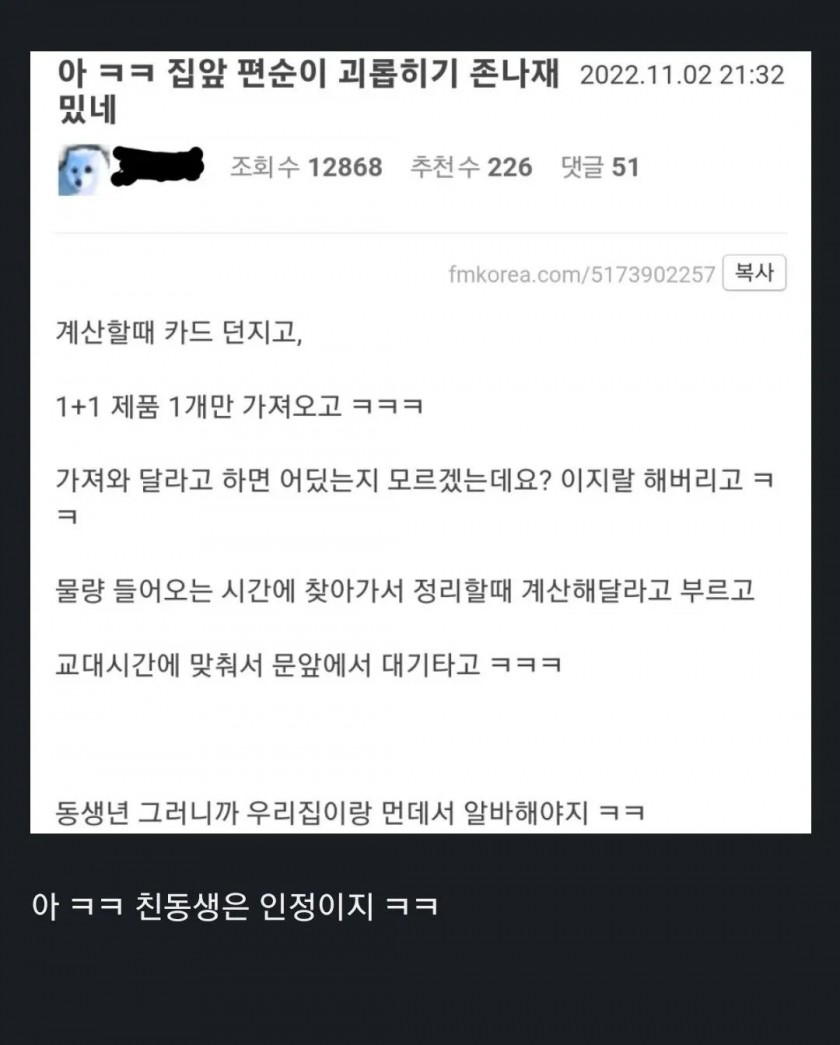 비회원 이슈 0 25 10.01 17:00 편의점 알바 괴롭히는거 재미있네 출처 : https://m.bboom.naver.com/best/get?boardNo=9&postNo=4299162 이 글을 SNS로 공유하기