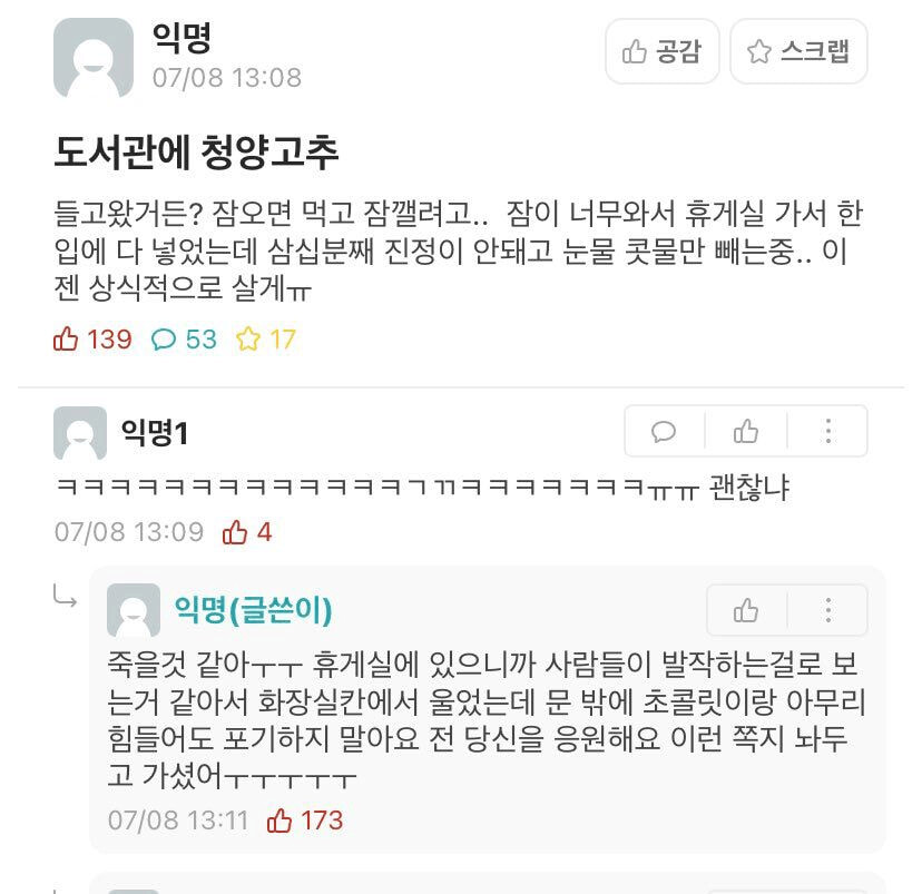비회원 이슈 0 21 10.02 17:00 잠깨려고 청양고추 먹었는데 효과가 너무 좋았다 출처 : https://m.bboom.naver.com/best/get?boardNo=9&postNo=4278934 이 글을 SNS로 공유하기