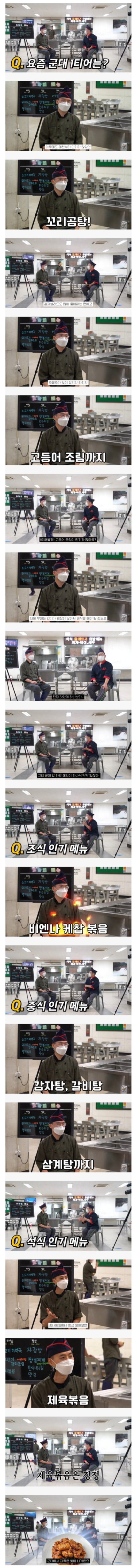 비회원 이슈 0 20 10.02 17:00 취사병이 말하는 요즘 군대 1티어 음식 다 맛있는 것들이긴 하지 출처 : https://m.bboom.naver.com/best/get?boardNo=9&postNo=4330054 이 글을 SNS로 공유하기