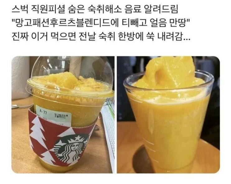 비회원 이슈 0 15 10.05 07:00 스타벅스 직원피셜 숨은 숙취해소 음료 술마시고 먹어볼만 할듯 출처 : https://m.bboom.naver.com/best/get?boardNo=9&postNo=4328815 이 글을 SNS로 공유하기
