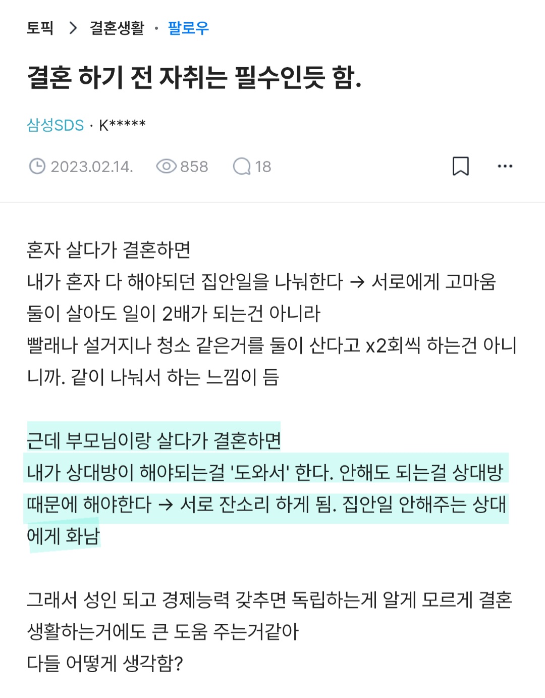 비회원 이슈 0 9 10.06 07:00 결혼은 자취해본 사람과 해라 진짜 맞는 말인거같음여 출처 : https://m.bboom.naver.com/best/get?boardNo=9&postNo=4329175 이 글을 SNS로 공유하기