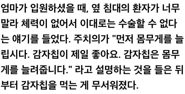 비회원 이슈 0 9 10.06 17:00 의사도 인정한 감자칩의 위력 아 안먹을게여 ㅠㅠ 출처 : https://m.bboom.naver.com/best/get?boardNo=9&postNo=4331132 이 글을 SNS로 공유하기