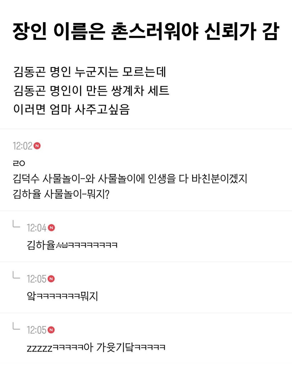 비회원 이슈 0 2 10.08 07:00 장인 이름은 촌스러워야 신뢰가 감.jpg 김하율 사물놀이 ㅋㅋㅋㅋㅋㅋㅋㅋㅋㅋ 출처 : https://m.bboom.naver.com/best/get?boardNo=9&postNo=4334718 이 글을 SNS로 공유하기