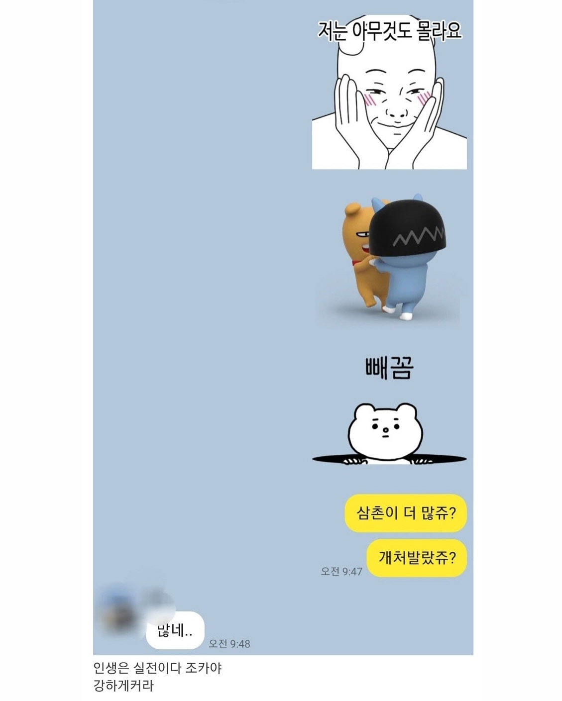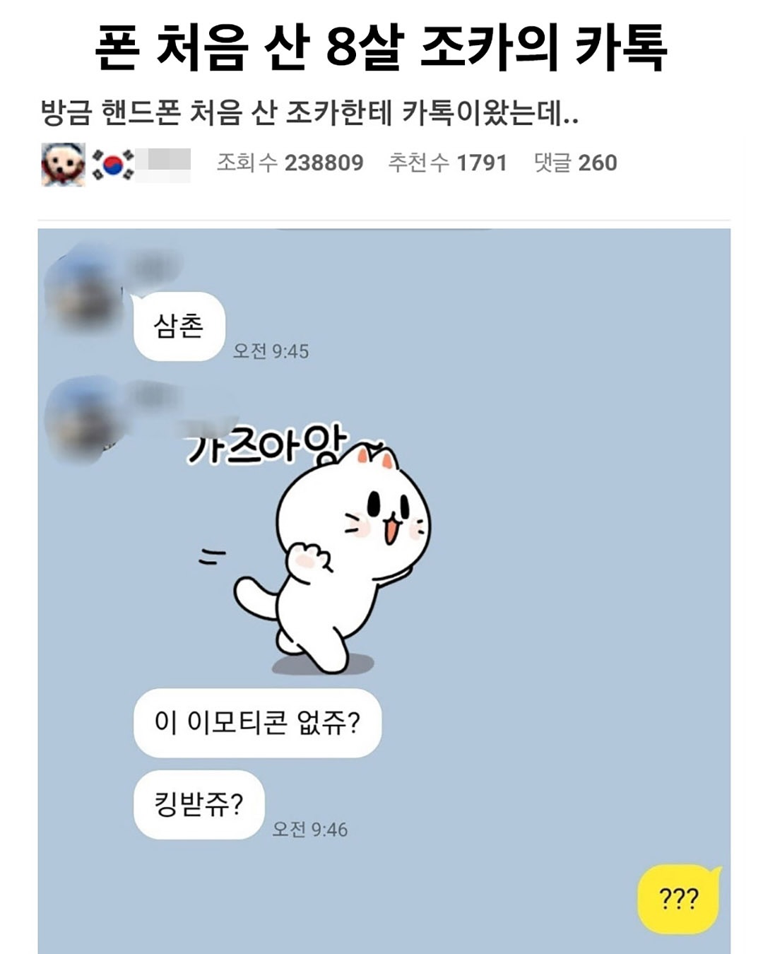 비회원 이슈 0 6 17시간전 폰 처음 산 8살 조카의 카톡.jpg ㅋㅋㅋㅋㅋㅋㅋㅋㅋㅋㅋㅋㅋㅋㅋㅋㅋㅋㅋㅋㅋ 출처 : https://m.bboom.naver.com/best/get?boardNo=9&postNo=4336034 이 글을 SNS로 공유하기