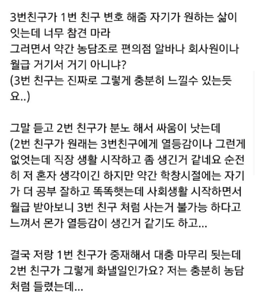 비회원 이슈 0 5 10.24 07:00 친구끼리 싸움난 썰 2번이 진짜 별로 출처 : https://m.bboom.naver.com/best/get?boardNo=9&postNo=4334292 이 글을 SNS로 공유하기