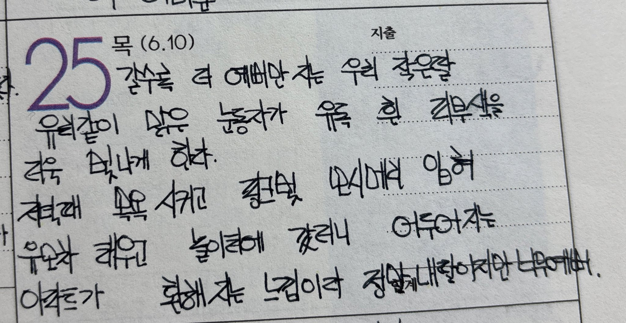 비회원 이슈 0 5 10.24 07:00 우리 엄마 육아일기에 주접문 쓴게 너무 웃겨서 한참을 웃음.jpg 사랑으로 가득담긴 육아일기 ???? 출처 : https://m.bboom.naver.com/best/get?boardNo=9&postNo=4336013 이 글을 SNS로 공유하기