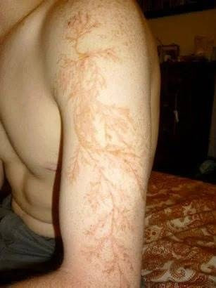 이렇게 번개를 맞으면 피부에 붉은색으로