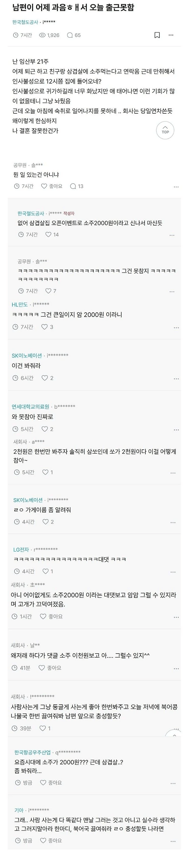 비회원 이슈 0 4 11.02 17:00 임산부 아내를 둔 남편이 과음해서 출근 못 한 이유 아이고 ㅋㅋ쿠ㅜㅜ 출처 : https://m.bboom.naver.com/best/get?boardNo=9&postNo=4340941 이 글을 SNS로 공유하기