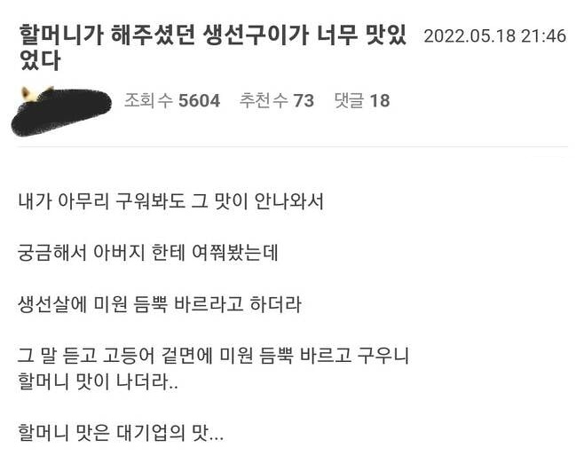 비회원 이슈 0 3 4시간전 할머니가 해주셨던 생선구이가 너무 맛있었다.jpg 앜ㅋㅋㅋㅋㅋㅋㅋㅋㅋㅋㅋㅋ 출처 : https://m.bboom.naver.com/best/get?boardNo=9&postNo=4340357 이 글을 SNS로 공유하기