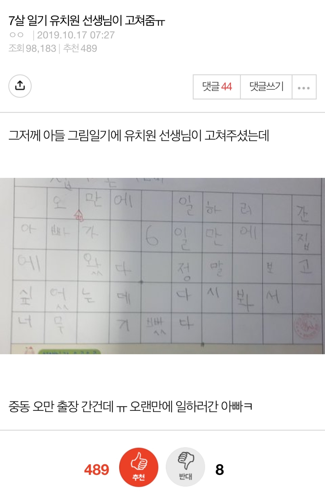 비회원 이슈 0 2 7시간전 아빠 백수 만든 유치원 선생님 ㅋㅋㅋㅋㅋㅋㅋㅋ어떻게햌ㅋㅋㅋㅋ 출처 : https://m.bboom.naver.com/best/get?boardNo=9&postNo=4340964 이 글을 SNS로 공유하기