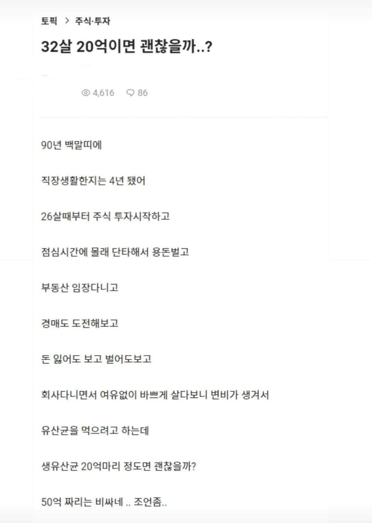 비회원 이슈 0 2 11.12 17:00 32살에 20억이면 괜찮을까? 유산균 ㅋㅋㅋㅋㅋ 출처 : https://m.bboom.naver.com/best/get?boardNo=9&postNo=4341958 이 글을 SNS로 공유하기