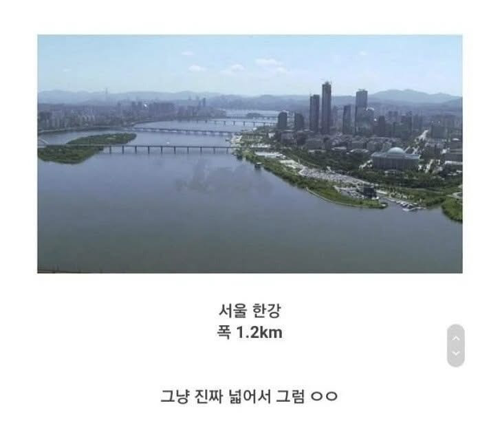 비회원 이슈 0 4 11.14 17:00 한강의 폭이 넓어보이는 이유 진짜 넓군요 ㅋㅋ 출처 : https://m.bboom.naver.com/best/get?boardNo=9&postNo=4344795 이 글을 SNS로 공유하기
