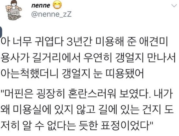 비회원 이슈 0 4 9시간전 3년간 미용해 준 애견미용사를 만나다. jpg 놀란눈좀 봐 ㅋㅋㅋㅋㅋㅋㅋㅋㅋ 출처 : https://m.bboom.naver.com/best/get?boardNo=9&postNo=4346685 이 글을 SNS로 공유하기