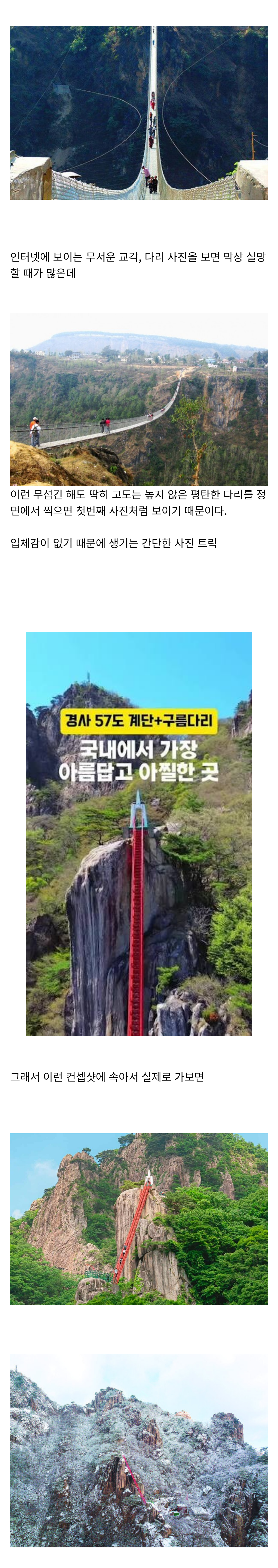 비회원 이슈 0 1 4시간전 무서워보이는 산속 구름다리 뜻밖의 진실 너무 무서워보이는데요?!?! 출처 : https://m.bboom.naver.com/best/get?boardNo=9&postNo=4344375 이 글을 SNS로 공유하기