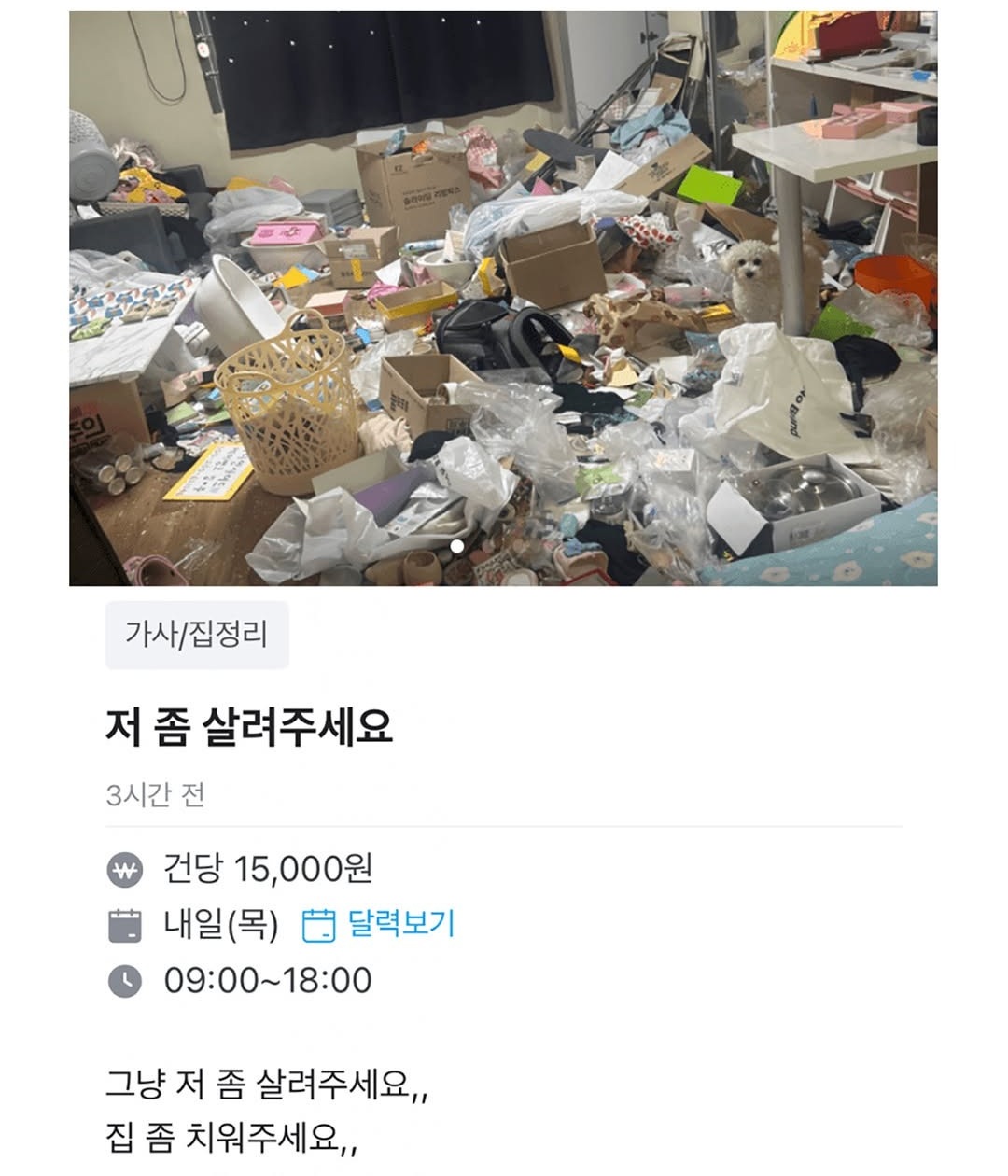 비회원 이슈 0 0 4시간전 강아지가 참다 못해 당근마켓에 올린거 같음 오매..ㄷㄷㄷ 출처 : https://m.bboom.naver.com/best/get?boardNo=9&postNo=4344800 이 글을 SNS로 공유하기