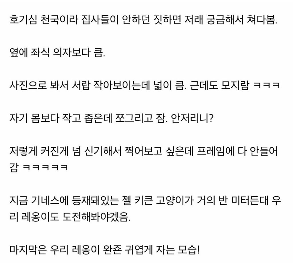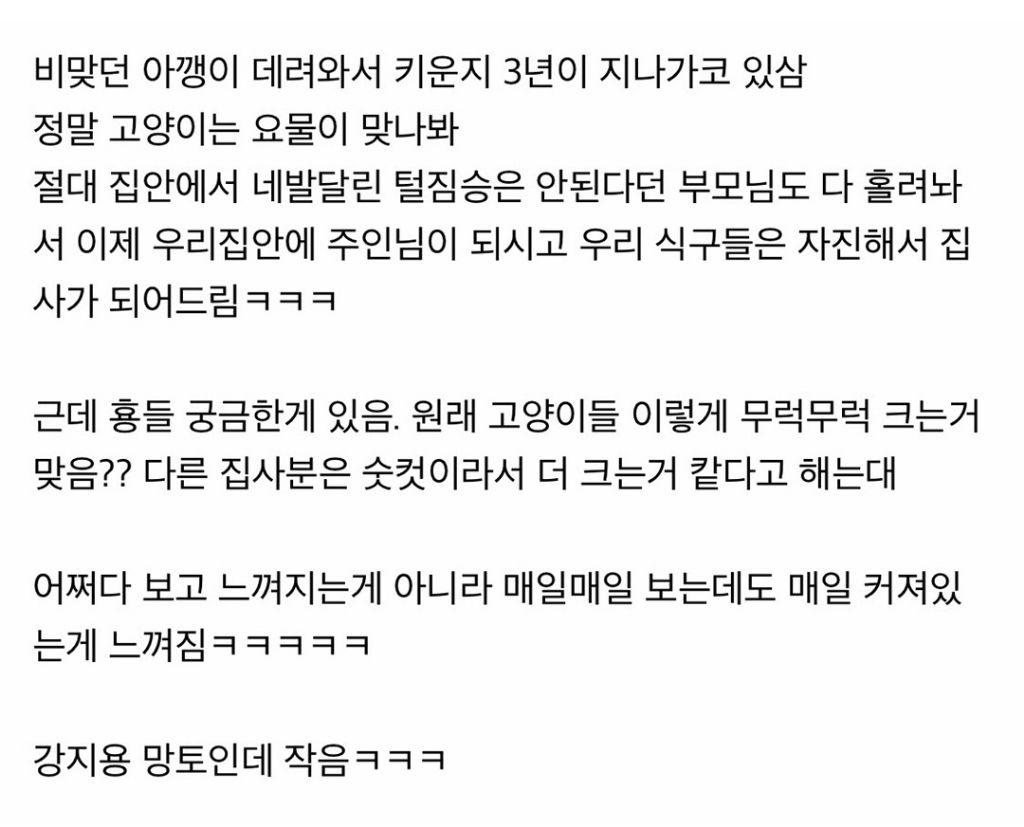 비회원 이슈 0 0 4시간전 원래 고양이 이렇게 커짐?.jpg 자이언트 베이비 ???????????? 출처 : https://m.bboom.naver.com/best/get?boardNo=9&postNo=4344465 이 글을 SNS로 공유하기