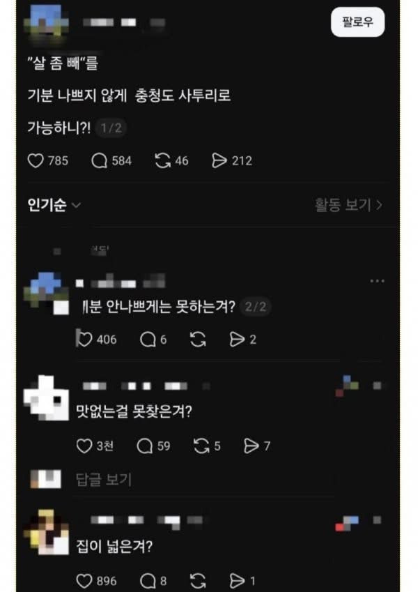 비회원 이슈 0 2 4시간전 다시 보는 "살 좀 빼" 충처도 버전.jpg ㅋㅋㅋㅋ맛없는걸 못찾은겨 ㅋㅋㅋㅋㅋㅋㅋㅋㅋ 출처 : https://m.bboom.naver.com/best/get?boardNo=9&postNo=4344757 이 글을 SNS로 공유하기