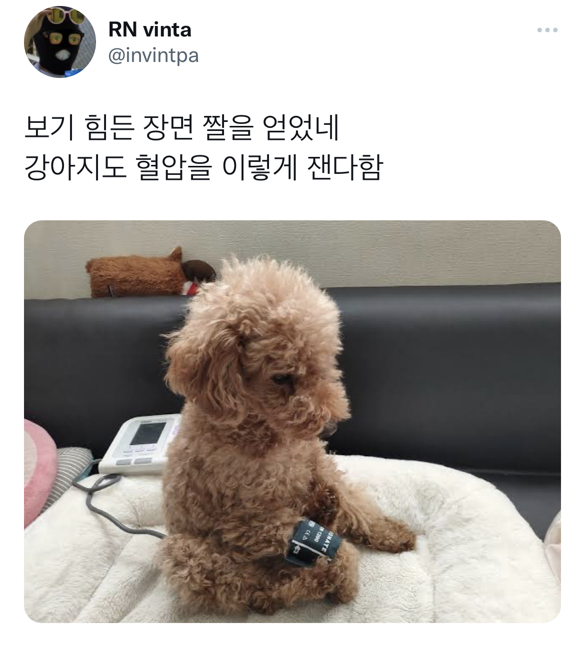 비회원 이슈 0 2 4시간전 강아지도 혈압을 이렇게 잰다함.jpg 너무귀엽자나 ㅠㅠㅠㅋㅋㅋㅋㅋㅋㅋㅋ 출처 : https://m.bboom.naver.com/best/get?boardNo=9&postNo=4342878 이 글을 SNS로 공유하기