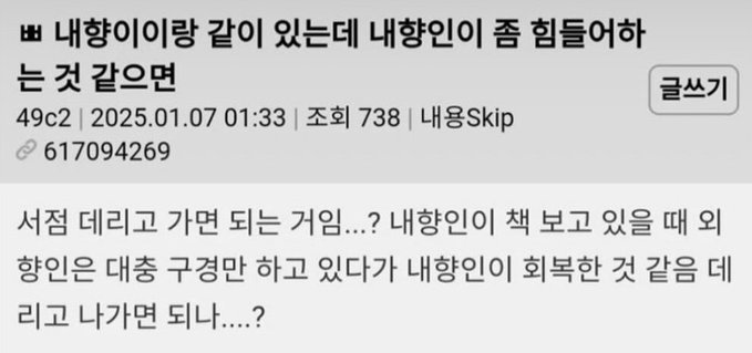 비회원 이슈 0 0 7시간전 내향인을 이해 못한 외향인의 발상에 경악을 금치 못함 헐 ㅋㅋㅋㅋㅋ 출처 : https://m.bboom.naver.com/best/get?boardNo=9&postNo=4346259 이 글을 SNS로 공유하기