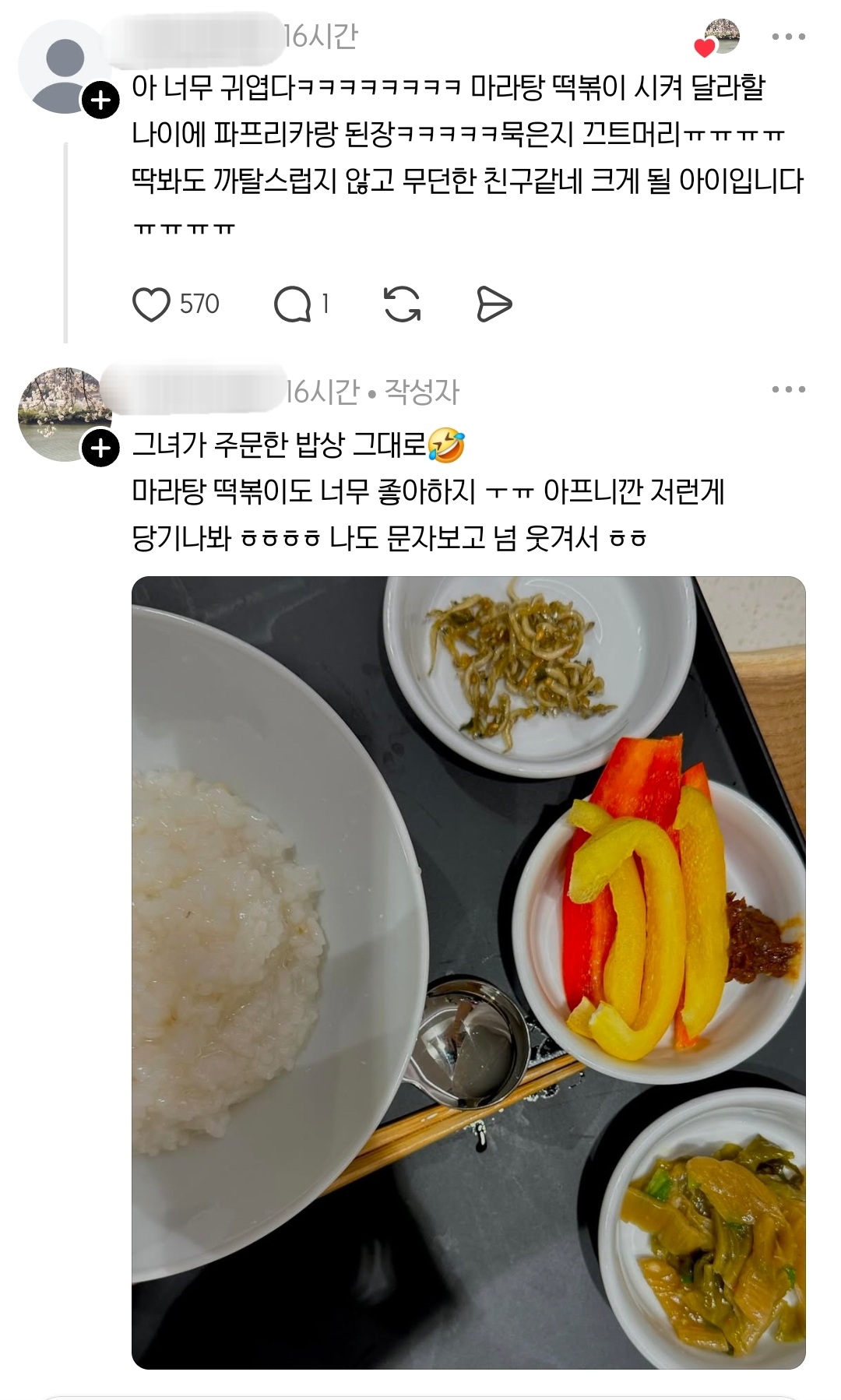 비회원 이슈 0 0 12.04 17:00 10살 딸이 요청한 식사 메뉴.jpg 귀엽다 ㅋㅋㅋㅋㅋㅋㅋㅋㅋㅋㅋ 출처 : https://m.bboom.naver.com/best/get?boardNo=9&postNo=4350240 이 글을 SNS로 공유하기