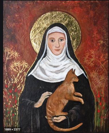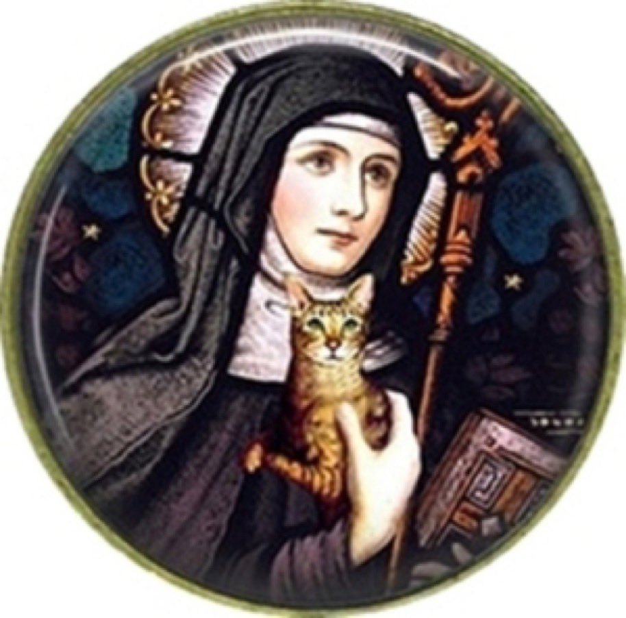 중세시대 마녀의 동물이라며 박해 받던 고양이들을 보호하고-사람들에게 쥐가 병의 원인이라 해서 탄압 받는 고양이들을 보호했다고- 연옥(우리식으로 하면 구천)을 떠도는 영혼들을 위해 기도하겠다던 성인