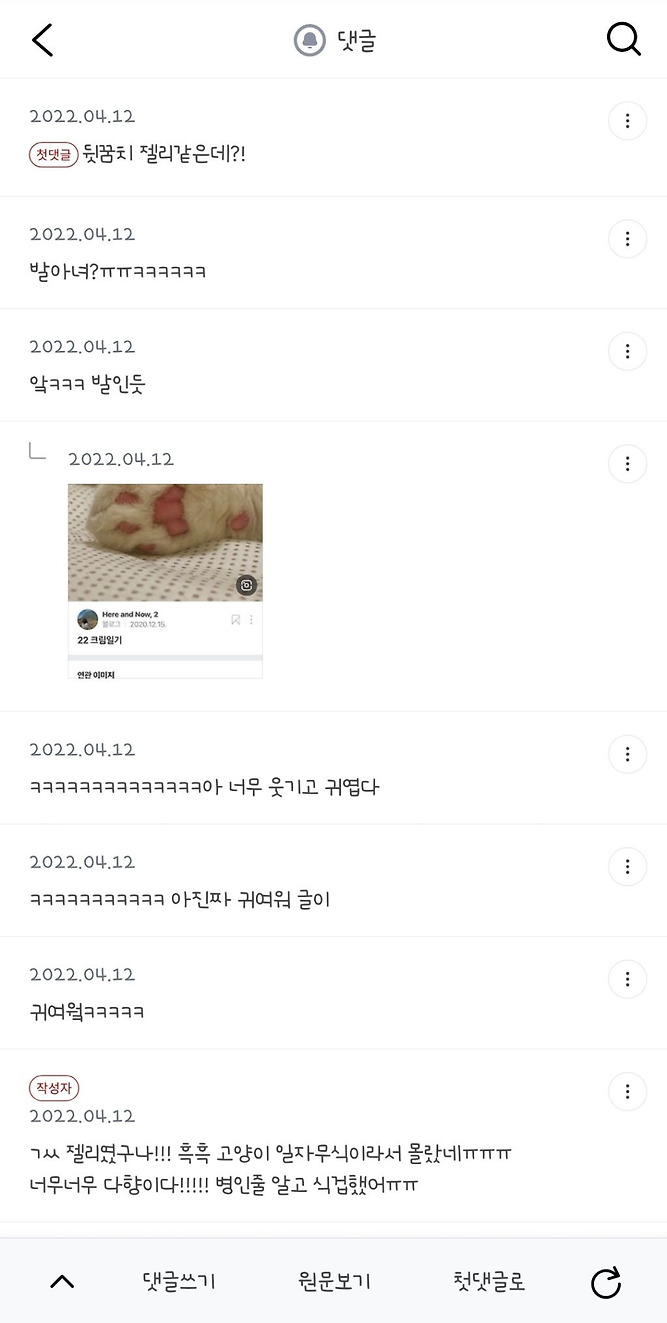 비회원 이슈 0 0 1시간전 고양이 다리에 돌같은거 붙어있는데 저 회색같은거 떼보려고해도 안떼져… 내가 좋아하는 길냥이인데 오늘 보니깐 저런게 붙어있더라구 혹시 무슨 병걸린건 아니겠지?ㅠㅠ 왜 안떨어지지 발바닥이였군요 ㅋㅋ 출처 : https://m.bboom.naver.com/best/get?boardNo=9&postNo=4348954 이 글을 SNS로 공유하기
