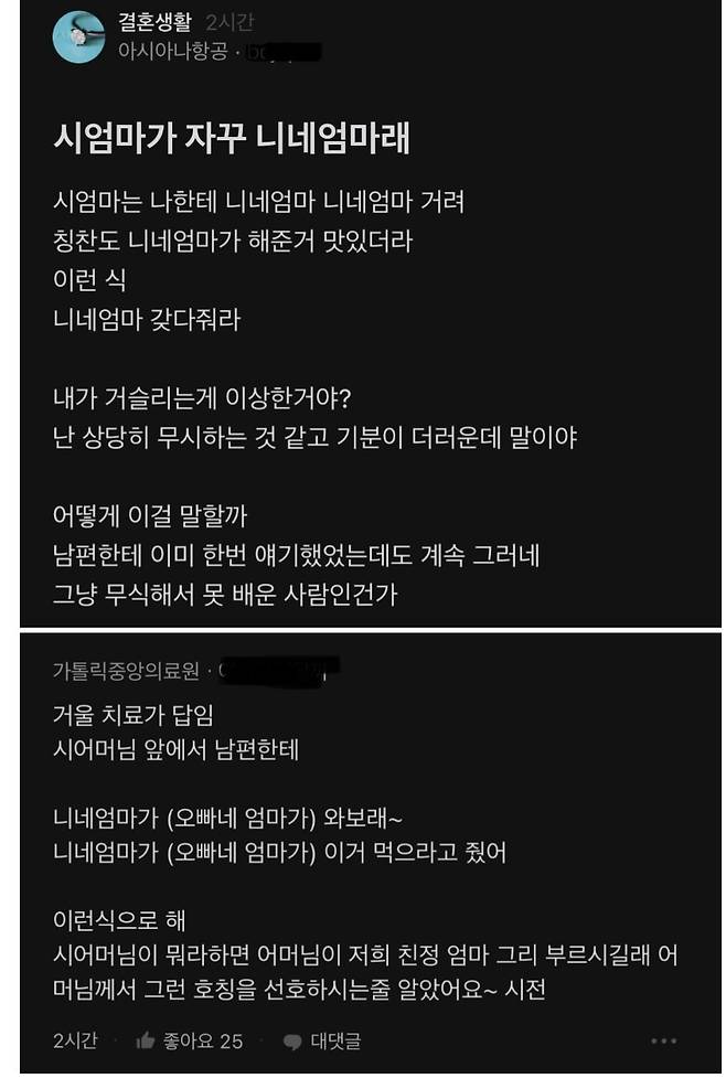 비회원 이슈 0 0 5시간전 자꾸 니네 엄마라고 부르는 시어머니 아 이건 쫌... 경우가 아니죠.. 출처 : https://m.bboom.naver.com/best/get?boardNo=9&postNo=4346906 이 글을 SNS로 공유하기